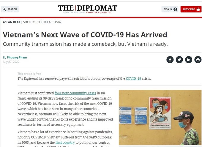 Sau khi Việt Nam xuất hiện trở lại các ca mắc COVID-19 sau hơn 3 tháng không có ca mắc mới trong cộng đồng, truyền thông quốc tế đã có những bài viết đánh giá cao về công tác phòng chống dịch và bày tỏ sự tin tưởng vào việc kiểm soát dịch bệnh của ...