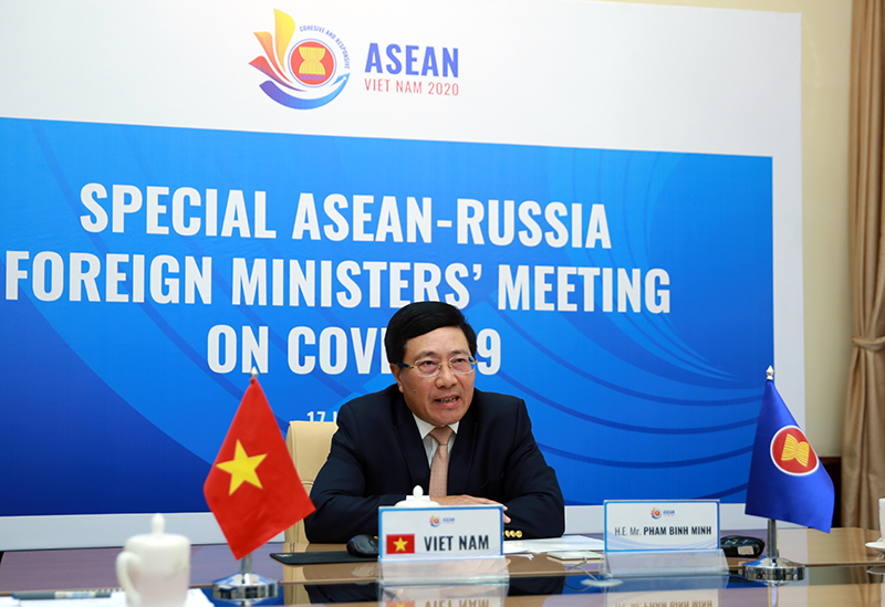 Trong bối cảnh đại dịch COVID-19 hiện nay, Phó Thủ tướng Phạm Bình Minh đề nghị các nước cần nâng cao trách nhiệm trong duy trì môi trường hoà bình, ổn định và an ninh và tuân thủ luật pháp quốc tế.