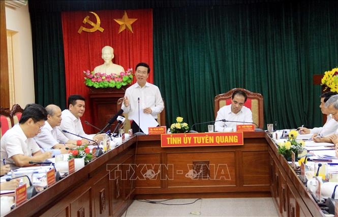 Đồng chí Võ Văn Thưởng lưu ý: Dự thảo Báo cáo chính trị trình Đại hội Đảng bộ tỉnh Tuyên Quang lần thứ XVII cần xác định rõ nhiệm vụ trọng tâm, chương trình hành động, nhiệm vụ đột phá thời gian tới; có nội dung, giải pháp thực sự thiết ...