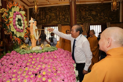 Trong không khí tăng ni, tín đồ Phật giáo cả nước đang hân hoan đón mừng lễ Phật đản Phật lịch 2564, dương lịch 2020, sáng 3/5, Phó Thủ tướng Thường trực Chính phủ Trương Hòa Bình đã đến thăm và chúc mừng Hòa thượng Thích Thiện Nhơn, Chủ tịch Hội đồng trị sự Giáo hội Phật giáo Việt Nam, tại chùa Minh Đạo, TPHCM.