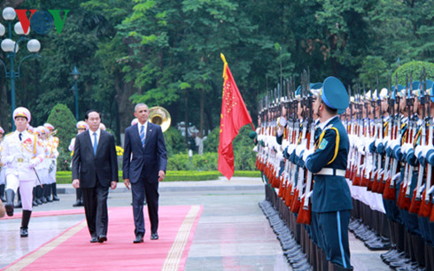 Trong khuôn khổ chuyến thăm chính thức Việt Nam của Tổng thống Hoa Kỳ Barack Obama, sáng 23/5, sau lễ đón chính thức, Chủ tịch nước Trần Đại Quang đã hội đàm với Tổng thống Obama tại Phủ Chủ tịch và tham dự họp báo chung tại Trung tâm hội nghị quốc tế.