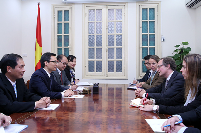 Chiều 15/3, tại trụ sở Chính phủ, Phó Thủ tướng Vũ Đức Đam đã tiếp ông Bruno Angelet, Đại sứ Liên minh châu Âu (EU) tại Việt Nam.