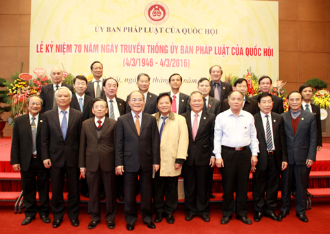 Chiều 29.2, tại Nhà QH, Chủ tịch QH Nguyễn Sinh Hùng đã dự Lễ kỷ niệm 70 ngày truyền thống Ủy ban Pháp luật (4.3.1946 - 4.3.2016).