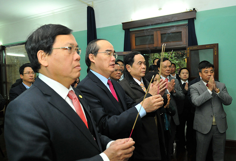 Sáng 15/2 (tức mùng 8 Tết Bính Thân), Ủy viên Bộ Chính trị, Chủ tịch Ủy ban Trung ương MTTQ Việt Nam Nguyễn Thiện Nhân dẫn đầu đoàn đại biểu MTTQ Việt Nam đến dâng hương tưởng nhớ Bác Hồ tại Nhà 67 - Khu di tích Chủ tịch Hồ Chí Minh, Ba Đình, Hà Nội. ...