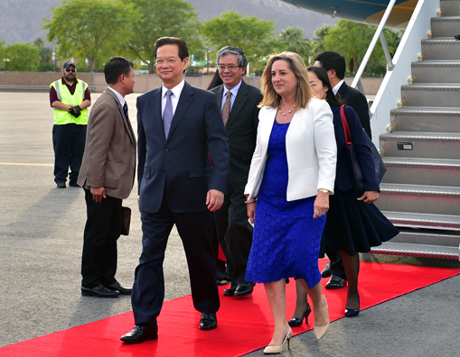 Sáng 15/2 (giờ Việt Nam), Thủ tướng Chính phủ Nguyễn Tấn Dũng cùng Đoàn đại biểu cấp cao Việt Nam đã tới Sân bay quốc tế Palm Spring, bang California, Hoa Kỳ tham dự Hội nghị Cấp cao đặc biệt ASEAN-Hoa Kỳ tổ chức tại Sunnylands, bang California từ ngày 15-16/2. ...
