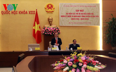 Nhân kỷ niệm 70 năm Ngày Tổng tuyển cử đầu tiên, sáng 5/1, tại Nhà Quốc hội, Ủy ban Thường vụ Quốc hội khóa XIII đã gặp mặt các thế hệ đại biểu Quốc hội.