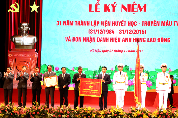 Chiều 27/12, thay mặt lãnh đạo Đảng, Nhà nước, Phó Thủ tướng Vũ Đức Đam đã dự và trao danh hiệu Anh hùng Lao động cho Viện Huyết học-Truyền máu Trung ương.