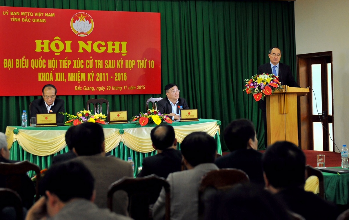 Chiều 29/11, Ủy viên Bộ Chính trị, Chủ tịch Ủy ban Trung ương MTTQ Việt Nam Nguyễn Thiện Nhân cùng Đoàn đại biểu Quốc hội tỉnh Bắc Giang đã tiếp xúc cử tri sau Kỳ họp thứ 10, khóa XIII, tại TP. Bắc Giang.