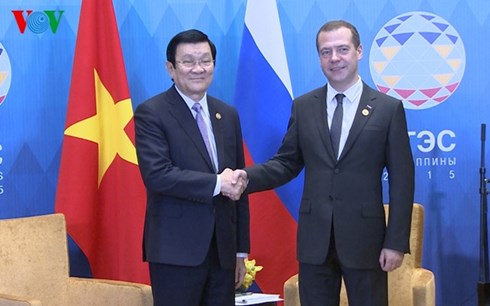 Chiều 18/11, Chủ tịch nước Trương Tấn Sang đã cuộc gặp và trao đổi với Thủ tướng Nga Medvedev.