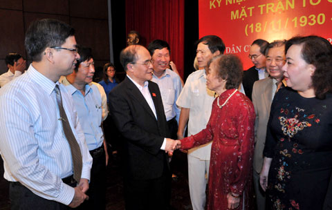 Nhân kỷ niệm 85 năm Ngày truyền thống Mặt trận Tổ quốc Việt Nam (18.11.1930 - 18.11.2015), tối 17.11, Chủ tịch QH Nguyễn Sinh Hùng đã đến dự Ngày hội Đại đoàn kết toàn dân liên khu dân cư số 10, 11 và 12, phường Trần Hưng Đạo, quận Hoàn Kiếm, Hà Nội. ...