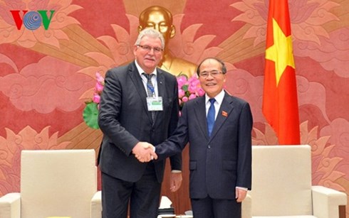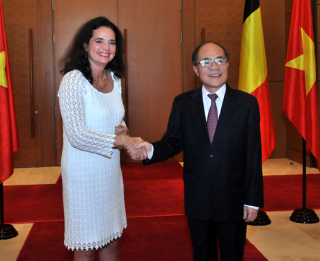 Chiều 4/11, tại Nhà Quốc hội, Chủ tịch Quốc hội Nguyễn Sinh Hùng tiếp Đoàn Nhóm nghị sĩ Nghị viện Châu Âu (EP).