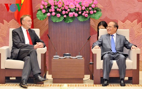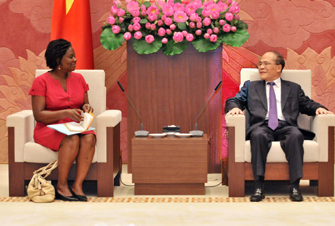 Chiều 24.8, tại Nhà QH, Chủ tịch QH Nguyễn Sinh Hùng đã tiếp thân mật Giám đốc Ngân hàng Thế giới tại Việt Nam Victoria Kwakwa.