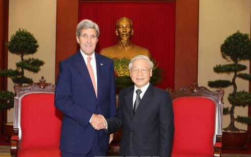 Tại buổi tiếp, Ngoại trưởng Hoa Kỳ John Kerry đã thông báo với Tổng Bí thư Nguyễn Phú Trọng quan điểm của Hoa Kỳ về tình hình Biển Đông, tình hình đàm phán về TPP.