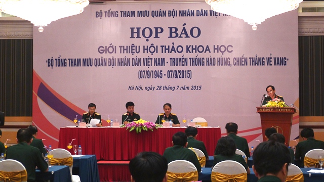 Chiều 28/7, tại Hà Nội, Bộ Tổng tham mưu Quân đội nhân dân Việt Nam tổ chức họp báo Giới thiệu Hội thảo khoa học “Bộ Tổng Tham mưu Quân đội nhân dân Việt Nam - Truyền thống hào hùng, chiến thắng vẻ vang” nhân kỷ niệm 70 năm Ngày thành lập Bộ Tổng Tham mưu Quân đội nhân dân Việt Nam (7/9/1945 - 7/9/2015).