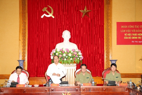 Chiều 23/7, tại Hà Nội, Ủy viên Bộ Chính trị, Phó Thủ tướng Chính phủ Nguyễn Xuân Phúc dẫn đầu Đoàn công tác Ban Chỉ đạo tổng kết 10 năm thực hiện Nghị quyết 48-NQ/TW của Bộ Chính trị về Chiến lược xây dựng và hoàn thiện hệ thống pháp luật Việt Nam đã làm việc với Đảng ủy Công an Trung ương.