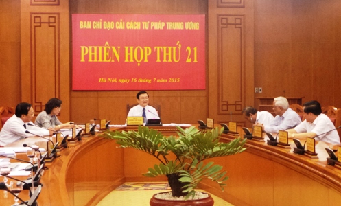 Chiều ngày 16/7, tại Hà Nội, Chủ tịch nước Trương Tấn Sang, Trưởng Ban Chỉ đạo cải cách tư pháp Trung ương chủ trì phiên họp thứ 21 thảo luận và tiếp tục cho ý kiến về Đề án "Đổi mới cơ chế phân bổ ngân sách cho Toà án nhân dân theo tinh thần Nghị quyết 49-NQ/TW của Bộ Chính trị" và Đề án "Đổi mới cơ chế phân bổ ngân sách cho Viện kiểm sát nhân dân, đáp ứng yêu cầu cải cách tư pháp".