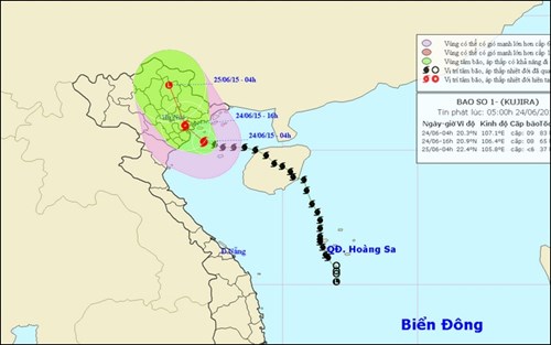 Trong 6 giờ vừa qua, bão số 1 hầu như ít dịch chuyển và mạnh lên cấp 9, giật mạnh cấp 12.