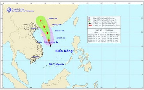 Dự báo trong 24 giờ tới, bão số 1 di chuyển theo hướng Bắc Tây Bắc, mỗi giờ đi được 10km.
