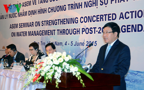 Phó Thủ tướng Phạm Bình Minh mong cộng đồng các nước thành viên ASEM chung tay, hỗ trợ, chia sẻ kinh nghiệm trong việc quản lý, khai thác nguồn nước bền vững.