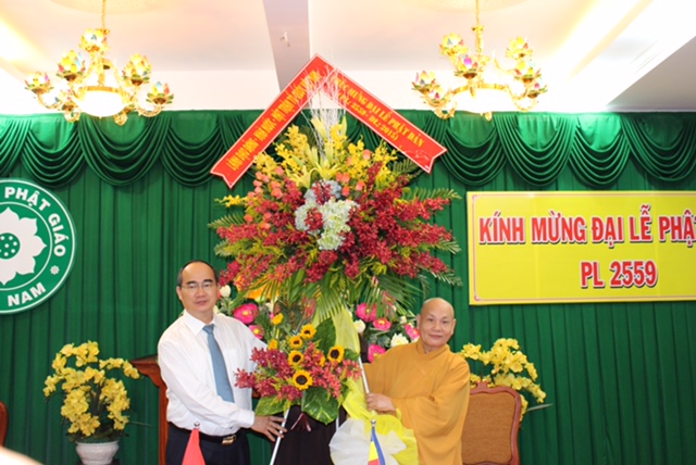 Nhân dịp Đại lễ Phật đản năm 2015-Phật lịch 2559, chiều 27/5, Chủ tịch Ủy ban TƯ MTTQ Việt Nam Nguyễn Thiện Nhân đến thăm và chúc mừng Hội đồng Trị sự TƯ Giáo hội Phật giáo Việt Nam tại Thiền viện Quảng Đức, TPHCM.