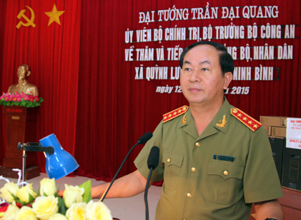 Ngày 12/5, Đại tướng Trần Đại Quang, Ủy viên Bộ Chính trị, Bộ trưởng Bộ Công an và Đoàn đại biểu Quốc hội tỉnh Ninh Bình đã có buổi tiếp xúc với cử tri tại chiến khu cách mạng Quỳnh Lưu, huyện Nho Quan để lắng nghe đề xuất, kiến nghị của ...
