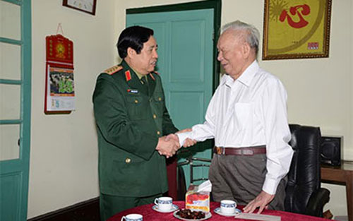 Bên ban thờ Đại tướng Võ Nguyên Giáp, Bộ trưởng Bộ Quốc phòng kính cẩn nghiêng mình, tưởng nhớ, tri ân những đóng góp to lớn của Đại tướng,