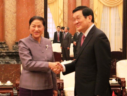 Chiều 30/3, tại Phủ Chủ tịch, Chủ tịch nước Trương Tấn Sang đã tiếp thân mật Chủ tịch Quốc hội CHDCND Lào Pa-ny Da-thô-tu đang có chuyến thăm chính thức Việt Nam và tham dự Đại hội đồng Liên minh Nghị viện thế giới IPU 132.
