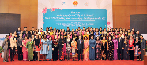 Nhân dịp kỷ niệm Ngày quốc tế Phụ nữ 8.3 và tiến tới Đại hội đồng Liên minh Nghị viện thế giới lần thứ 132 (IPU - 132), sáng 14.3, tại Nhà Quốc hội, Chủ tịch QH Nguyễn Sinh Hùng đã gặp mặt thân mật các đại biểu nữ nghị sỹ của Campuchia, Lào, ...
