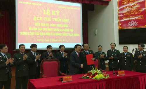 Chiều 12/3, tại Hà Nội, Ban Nội chính Trung ương và Ban cán sự đảng Thanh tra Chính phủ tổ chức Lễ ký kết chương trình phối hợp trong công tác nội chính và phòng, chống tham nhũng.