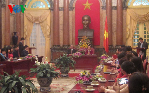 Phó Chủ tịch nước Nguyễn Thị Doan ân cần thăm hỏi và gửi lời chúc tốt đẹp nhất đến 50 nữ doanh nhân tiêu biểu.