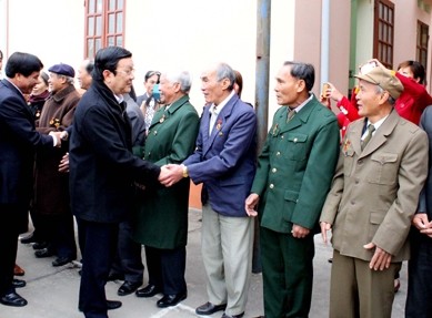 Sáng 6/2, Chủ tịch nước Trương Tấn Sang và đoàn công tác đến thăm và tìm hiểu về cuộc sống của bà con nhân dân xã Nhân Quyền, huyện Bình Giang, tỉnh Hải Dương - một xã vừa đạt chuẩn xã nông thôn mới. Chủ tịch nước cũng đã tới chúc Tết một ...
