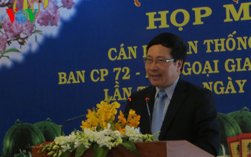 Phó Thủ tướng, Bộ trưởng Bộ Ngoại giao Phạm Bình Minh thông tin đến các cán bộ, viên chức hưu trí ngành ngoại giao về tình hình thế giới