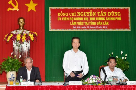 Sáng 9/2, Thủ tướng Nguyễn Tấn Dũng cùng đoàn công tác của Chính phủ có buổi làm việc với lãnh đạo tỉnh Đắk Lắk về tình hình kinh tế-xã hội của địa phương.