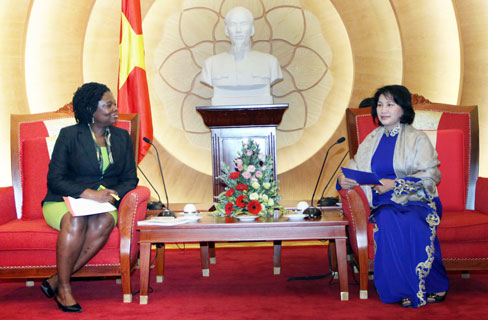 Chiều 3.2, tại trụ sở VPQH, Ủy viên Bộ Chính trị, Phó chủ tịch QH Nguyễn Thị Kim Ngân đã thân mật tiếp Giám đốc Ngân hàng Thế giới (WB) tại Việt Nam Victoria Kwakwa.