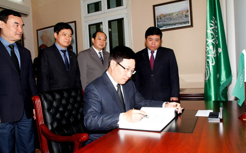 Phó Thủ tướng Phạm Bình Minh tới Đại sứ quán Vương quốcSaudi Arabiatại Hà Nội để chia buồn về việc Quốc vương Abdullah bin Abdulaziz từ trần.