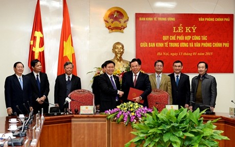 Chiều 13/1, tại trụ sở Văn phòng Chính phủ (VPCP), Bộ trưởng, Chủ nhiệm VPCP Nguyễn Văn Nên và Trưởng Ban Kinh tế Trung ương Vương Đình Huệ đã cùng nhau ký kết Quy chế phối hợp công tác giữa hai cơ quan VPCP và Ban Kinh tế Trung ương nhằm tăng cường phối ...