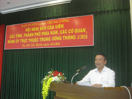 Ngày 14/1, tại TP Hồ Chí Minh, Ban Tuyên giáo Trung ương tổ chức Hội nghị Báo cáo viên các tỉnh, thành phố phía Nam, các cơ quan, đảng ủy trực thuộc Trung ương tháng 1/2015. Đồng chí Mai Văn Ninh - Uỷ viên Trung ương Đảng, Phó Trưởng Ban Tuyên giáo Trung ương chủ trì Hội nghị.