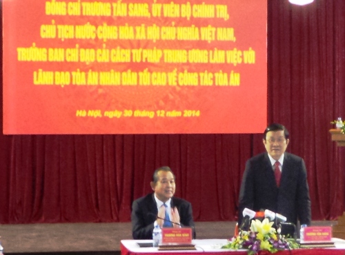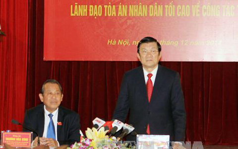 Chiều 30/12, Chủ tịch nước Trương Tấn Sang có buổi làm việc với lãnh đạo Tòa án nhân dân tối cao về công tác Tòa án.