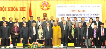 * Chủ tịch QH Nguyễn Sinh Hùng và Chủ tịch Ủy ban Trung ương MTTQ Việt Nam Nguyễn Thiện Nhân chủ trì Hội nghị.