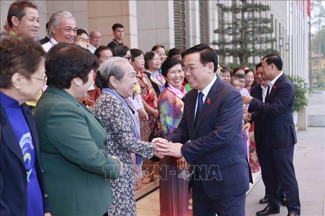 Chiều 10/4, tại Nhà Quốc hội, Chủ tịch Quốc hội Vương Đình Huệ gặp mặt Đoàn đại biểu Cựu tù chính trị và tù binh Thành phố Hồ Chí Minh.