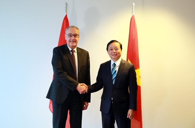 Phó Thủ tướng Trần Hồng Hà đề nghị Bộ trưởng Guy Parmelin cùng phối hợp, tạo điều kiện cho các doanh nghiệp Thụy Sỹ đầu tư kinh doanh lâu dài tại Việt Nam, đặc biệt trong các lĩnh vực Thụy Sỹ có thế mạnh và Việt Nam có nhu cầu như tài chính – ngân hàng, bảo hiểm, công nghiệp chế tạo, dược phẩm, chế biến nông sản, năng lượng tái tạo, du lịch.