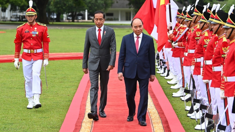 10h sáng nay (22/12), tại Dinh Tổng thống ở Thành phố Bogor, tỉnh Tây Java, Tổng thống Joko Widodo chủ trì lễ đón cấp Nhà nước Chủ tịch nước Nguyễn Xuân Phúc.