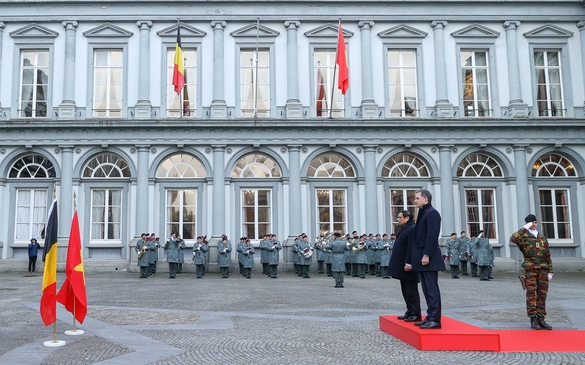 Chiều 13/12 (giờ địa phương), tại Cung điện Egmont ở thủ đô Brussels, Thủ tướng Vương quốc Bỉ Alexander De Croo đã chủ trì Lễ đón chính thức Thủ tướng Chính phủ Phạm Minh Chính cùng Đoàn đại biểu cấp cao Việt Nam thăm chính thức Vương quốc Bỉ.
