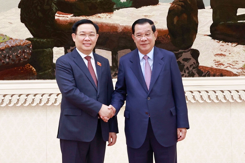 Trong khuôn khổ chuyến thăm chính thức Vương quốc Campuchia và tham dự Đại hội đồng liên Nghị viện Đông Nam Á lần thứ 43, sáng 20/11/2022, Chủ tịch Quốc hội Vương Đình Huệ đã có cuộc hội kiến với Xăm-đéc Tê-chô Hun Sen (Samdech Techo Hun Sen), Thủ tướng Vương quốc Campuchia tại Cung Hòa bình.