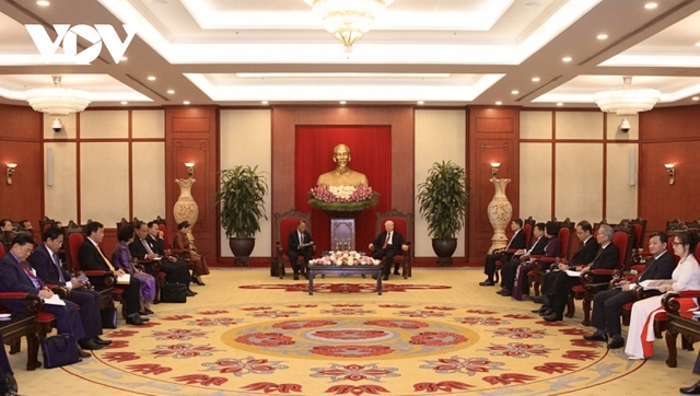 Ngày 13/9, tại Trụ sở Trung ương Đảng, Tổng Bí thư Nguyễn Phú Trọng tiếp Chủ tịch Danh dự Đảng Nhân dân Campuchia (CPP), Chủ tịch Quốc hội Vương quốc Campuchia Samdech Heng Samrin đang có chuyến thăm chính thức Việt Nam.