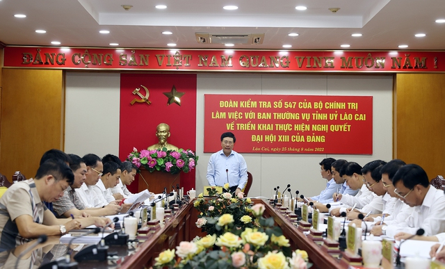 Sáng 25/8, Đoàn Kiểm tra số 547 của Bộ Chính trị làm việc với Ban Thường vụ Tỉnh ủy Lào Cai về việc triển khai thực hiện Nghị quyết Đại hội XIII của Đảng.