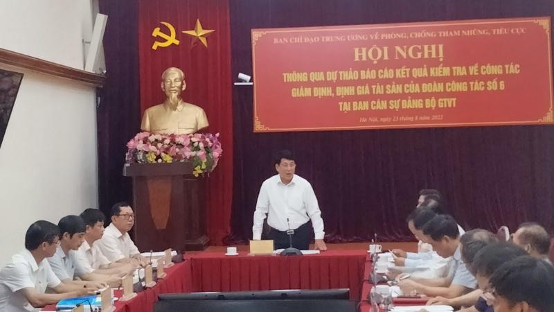 Chiều 23/8, tại Hà Nội, Ban Chỉ đạo Trung ương về phòng, chống tham nhũng, tiêu cực (Ban Chỉ đạo) tổ chức Hội nghị thông qua dự thảo báo cáo kết quả kiểm tra về công tác giám định, định giá tài sản của Đoàn công tác số 6 tại Ban Cán sự Đảng Bộ Giao thông vận tải.