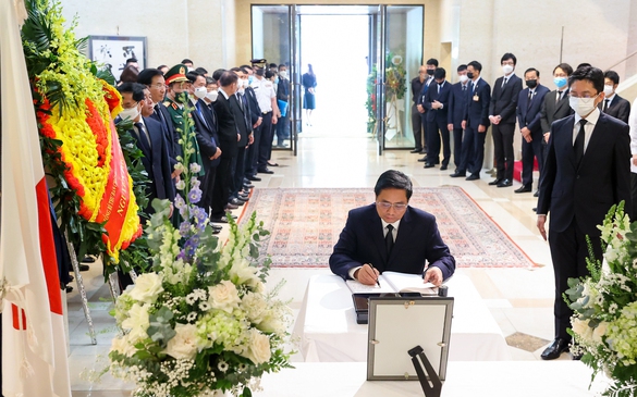 Sáng ngày 11/7, tại Hà Nội, Thủ tướng Chính phủ Phạm Minh Chính đã tới ghi sổ tang tưởng niệm cựu Thủ tướng Nhật Bản Abe Shinzo.