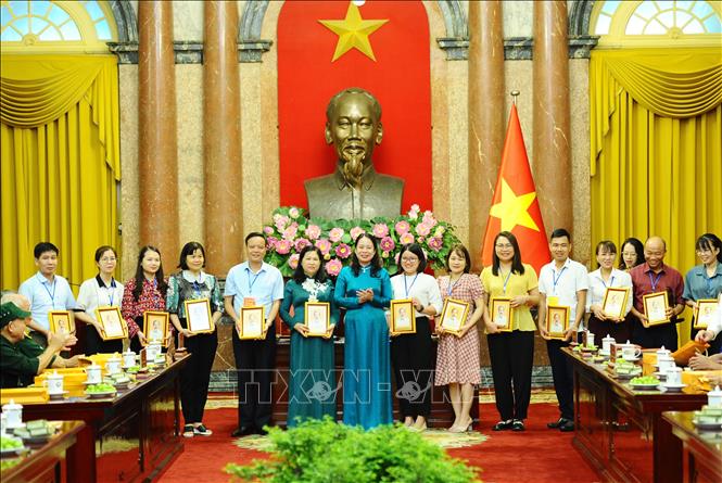 Sáng 6/7, tại Phủ Chủ tịch, Phó Chủ tịch nước Võ Thị Ánh Xuân gặp mặt Đoàn đại biểu người có công tiêu biểu tỉnh Bắc Kạn, nhân kỷ niệm 75 năm Ngày Thương binh-Liệt sĩ (27/7/1947-27/7/2022).