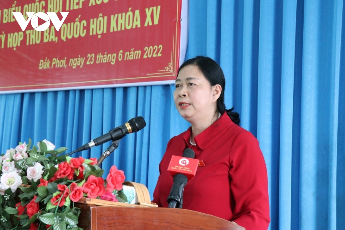 Hôm nay (23/6), Bí thư Trung ương Đảng, Trưởng ban Dân vận Trung ương Bùi Thị Minh Hoài cùng Đoàn đại biểu Quốc hội tỉnh Đắk Lắk đã tiếp xúc cử tri sau kỳ họp thứ 3, Quốc hội khóa XV tại các huyện Lắk, Krông Bông.